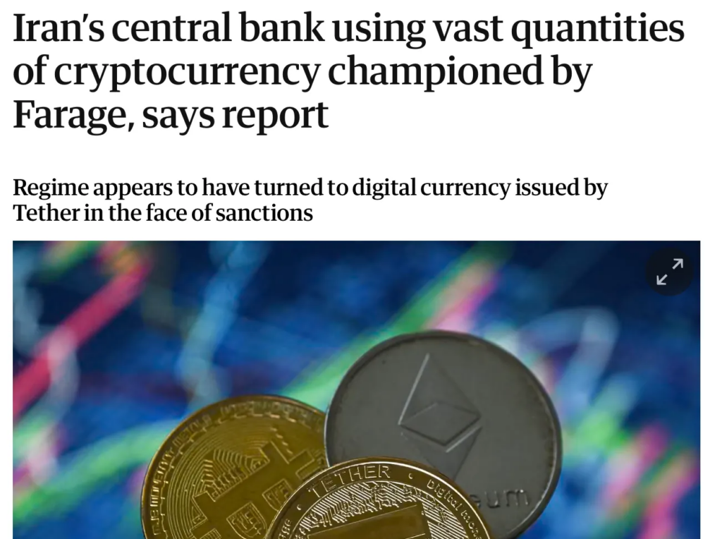 “Iran’s central bank appears to have been using vast quantities of a cryptocurrency championed by Nigel Farage, according to a new report.