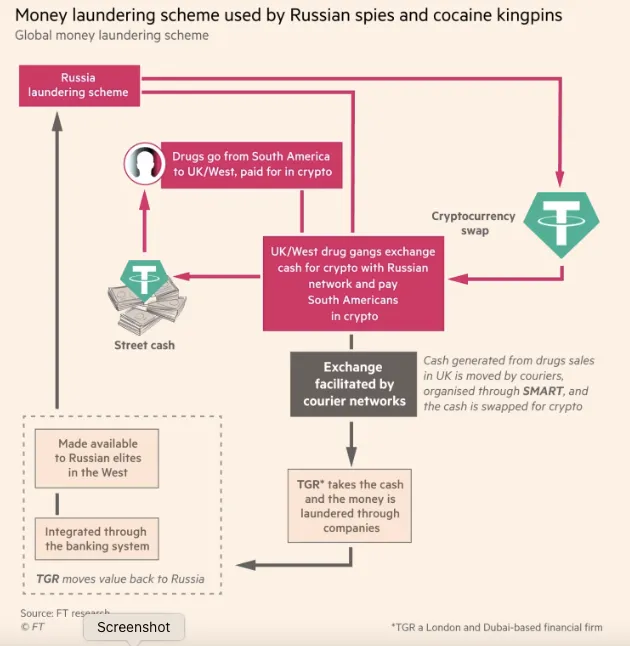 This is a chart from the Financial Times. The green diamond-shaped logo with a T is Tether.